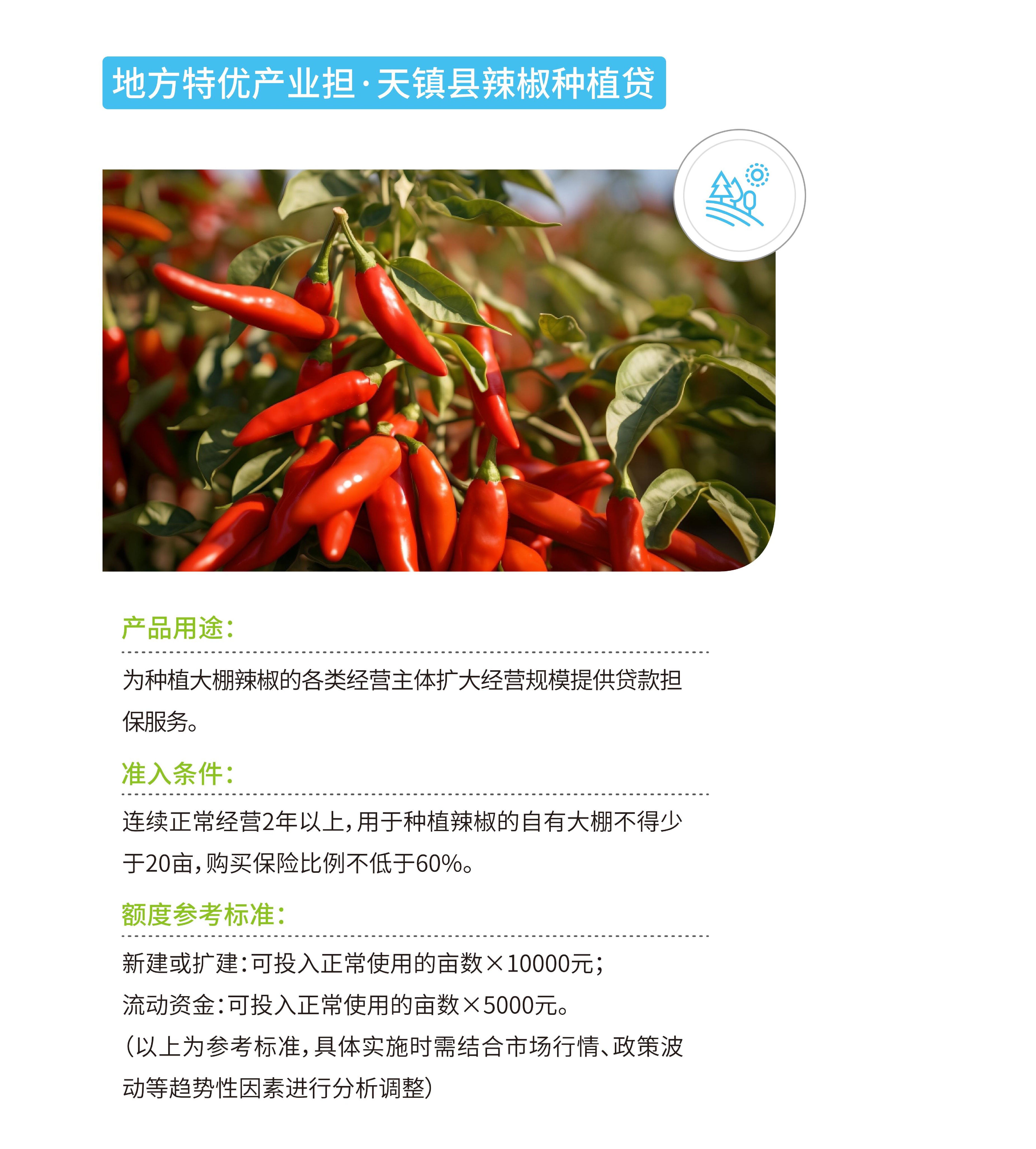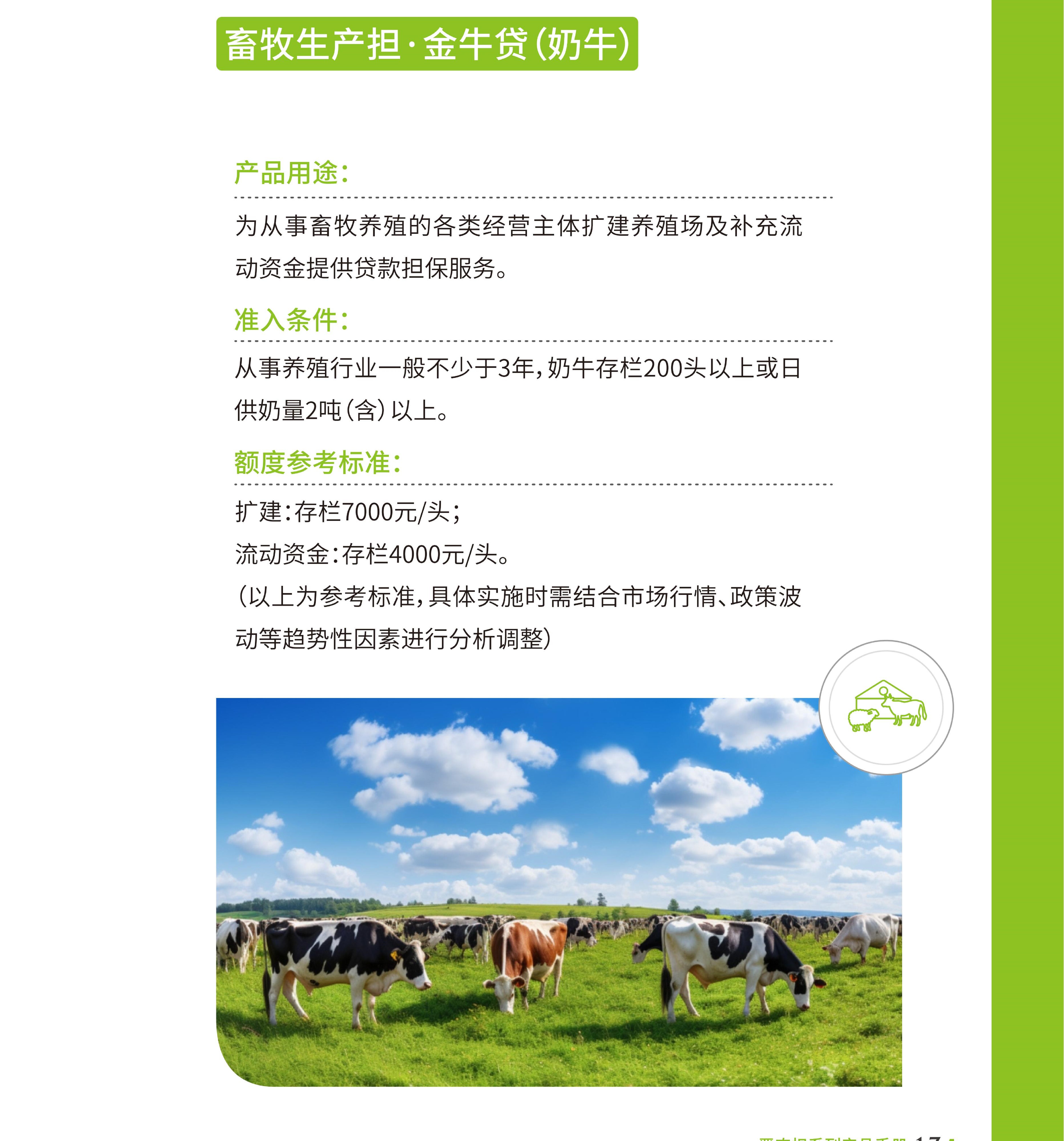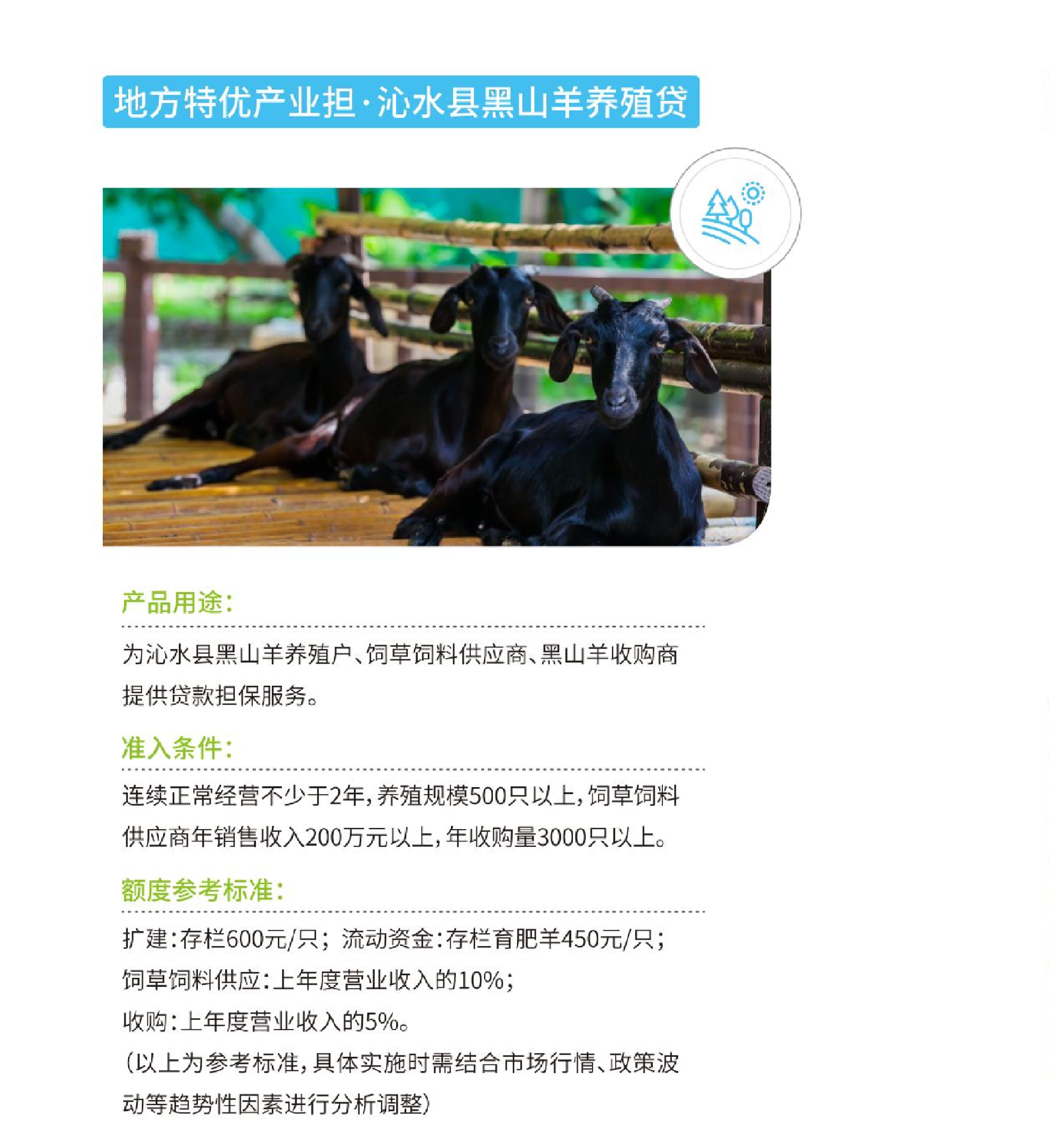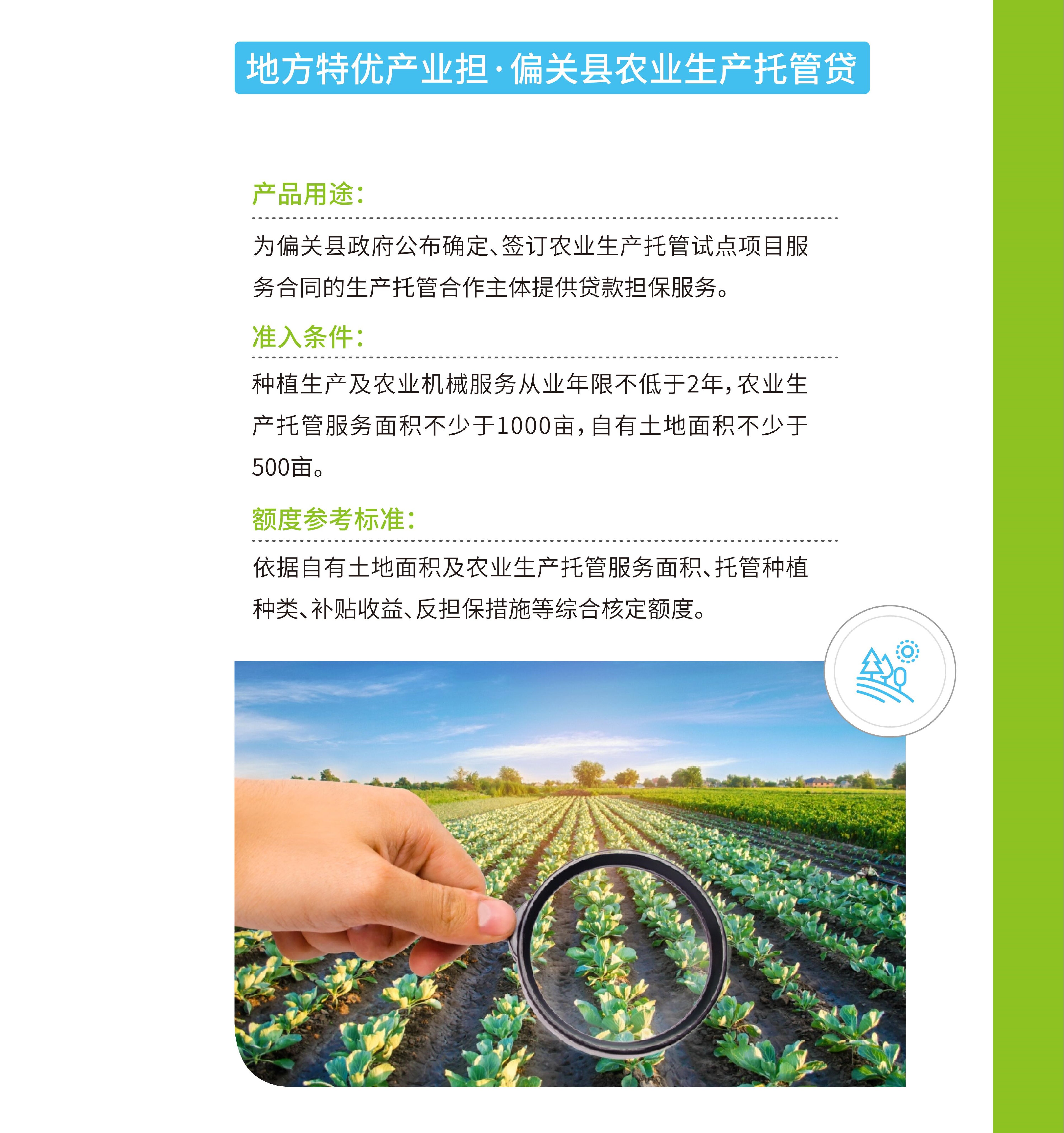 畜牧生产担·金猪贷 畜牧生产担·金羊贷 畜牧生产担·金牛贷(肉牛) 畜牧生产担·金牛贷(奶牛) 畜牧生产担·金鸡贷(肉鸡) 畜牧生产担·金鸡贷(蛋鸡) 农产品流通担·粮食购销贷 农产品流通担·果库贷 农产品流通担·农贸贷 农产品流通担·租金贷 农业社会化服务担·农资贷 农业社会化服务担·农机贷 农业新业态担·休闲农业和乡村旅游贷 农业新业态担·农家乐贷 地方特优产业担·天镇县辣椒种植贷 地方特优产业担·偏关县农业生产托管贷 地方特优产业担·中阳县木耳种植贷 地方特优产业担·和顺县“财兴担 2.0” 地方特优产业担·振东中药材产业化联合体贷 地方特优产业担·沁县肉鸡养殖贷 地方特优产业担·屯留区玉米购销贷 地方特优产业担·泽州县特优农业贷 地方特优产业担·沁水县黑山羊养殖贷 地方特优产业担·吉县苹果产业贷 地方特优产业担·临猗县果品产业贷