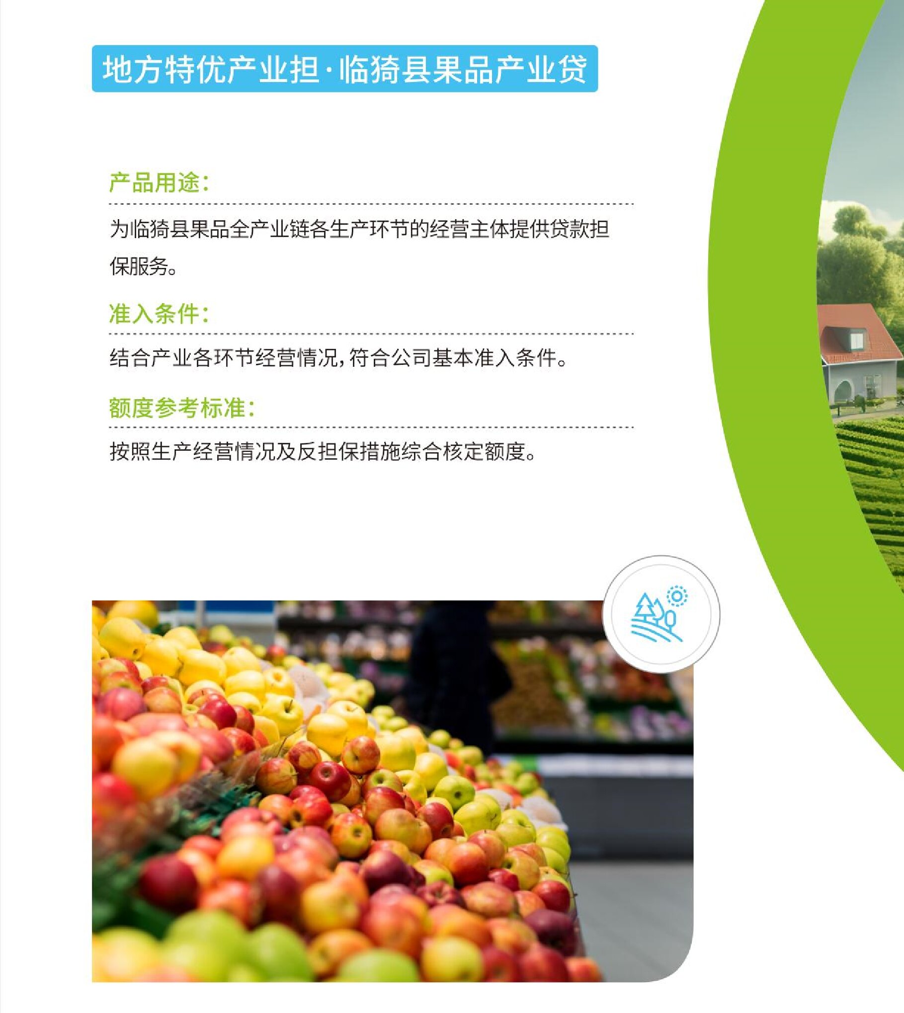 公司结合各地农业规划布局与重点扶持产业量身定制支持发展计划,已陆续研发11个针对地方特色优势产业的担保服务方案,引渠金融活水助力写就各地特色产业兴旺、农民生活富裕的新篇章。