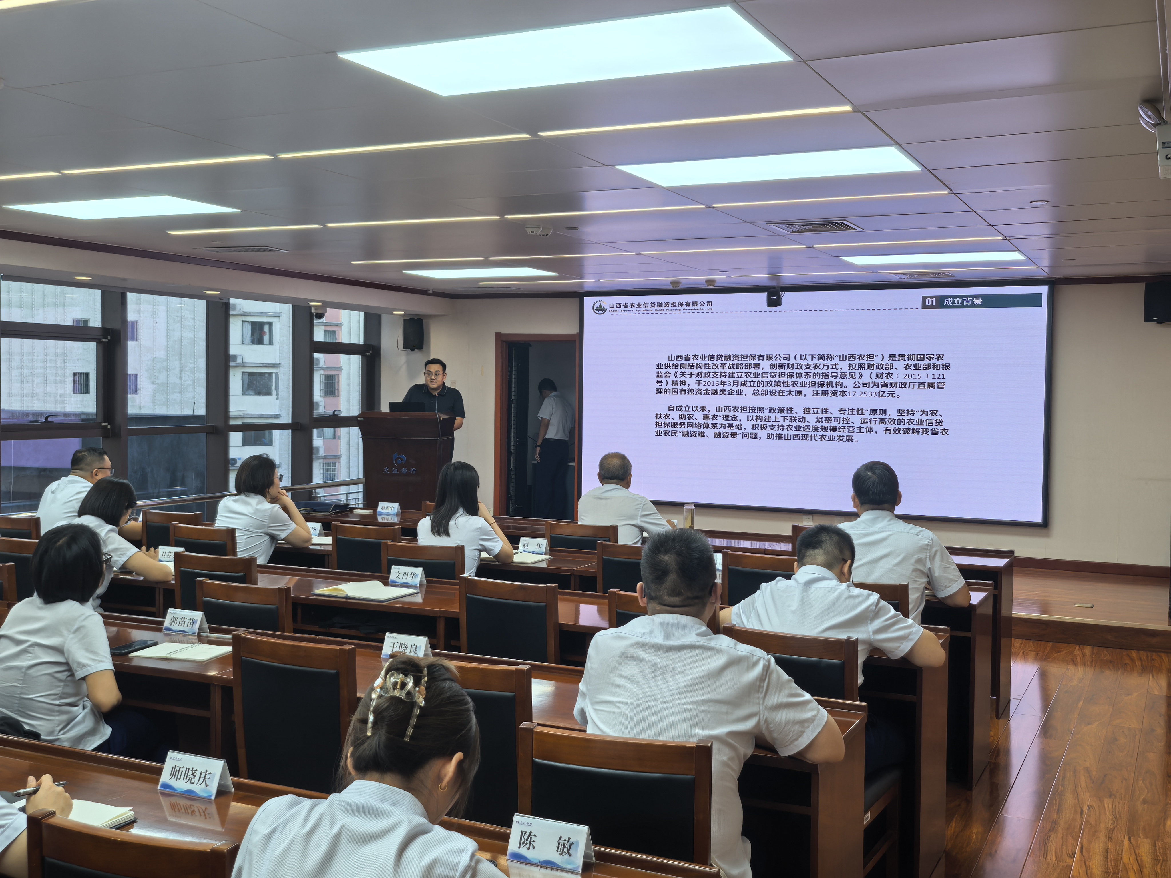 运城分公司介绍了农担成立背景、功能定位及担保产品,重点讲解了农担公司担保额度、费率优惠、风险分担机制以及银担合作模式。通过系统宣讲,帮助与会人员深入理解农业融资担保赋能乡村振兴的重要作用,准确把握农担政策优势以及银担合作契合点。